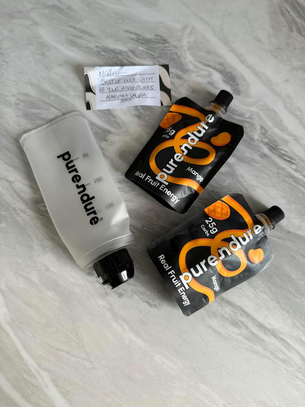 My latest order of Purendure Mango Energy Gel's are going down a treat and keeping me moving forward.